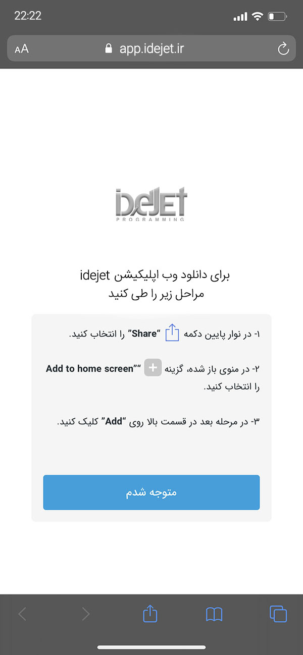 برای استفاده از وب اپلیکیشن برای نسخه های ios - ipad مراحل زیر را طی کنید